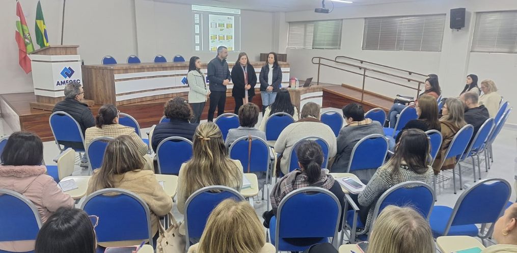 A reunião foi coordenada pela Márcia Demossi, Coordenadora do Colegiado de Educação da Ameosc, e contou com a presença do Secretário Executivo da AMEOSC, Airton Fontana.