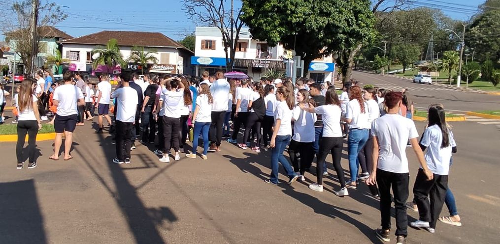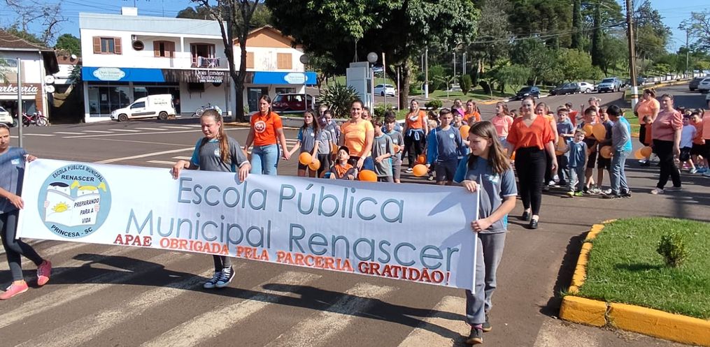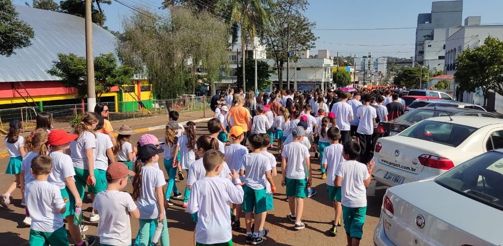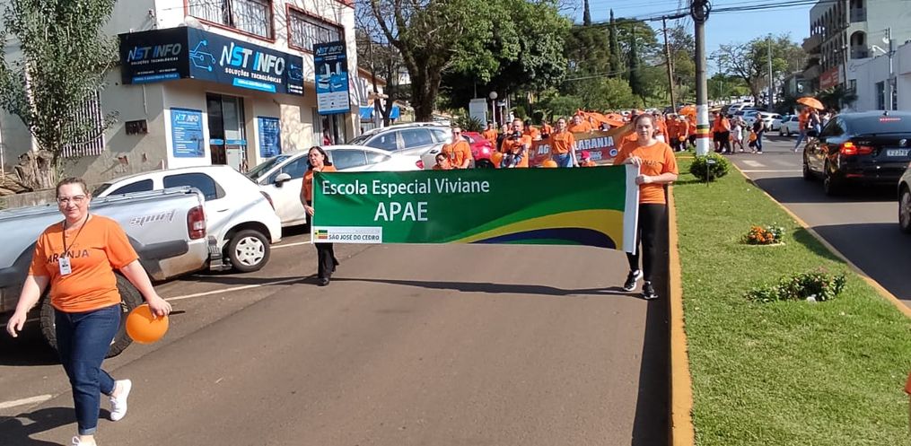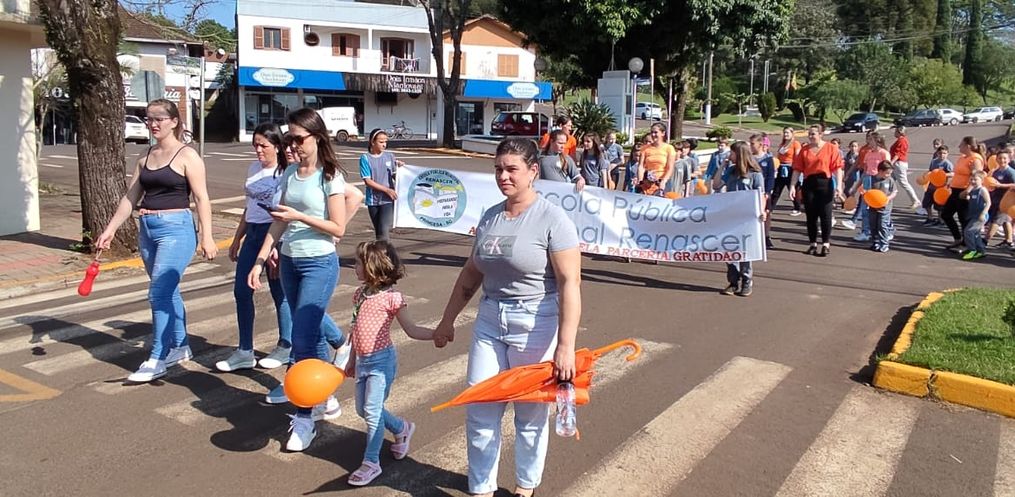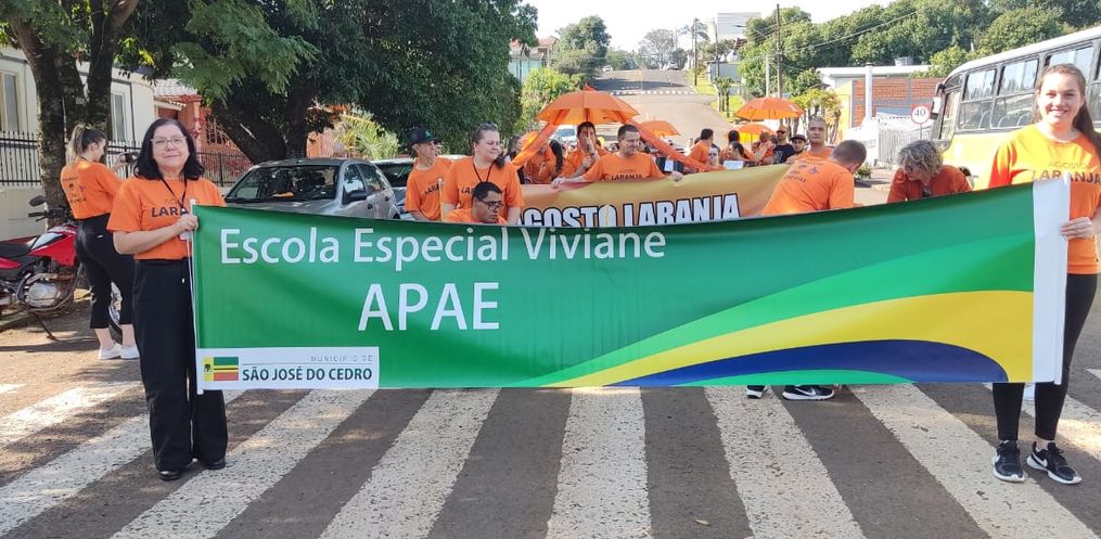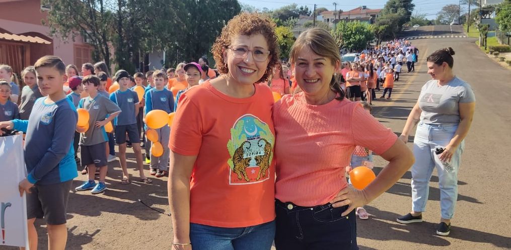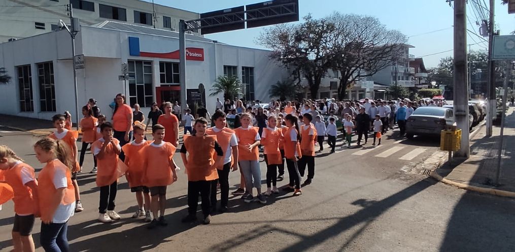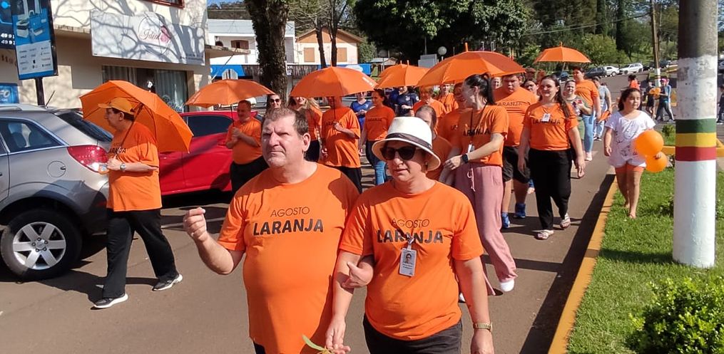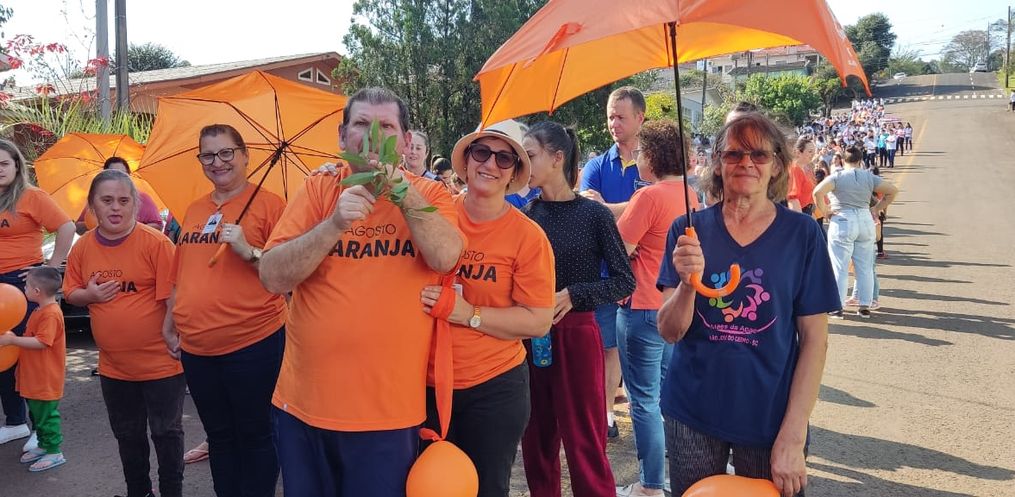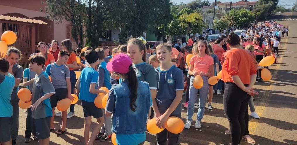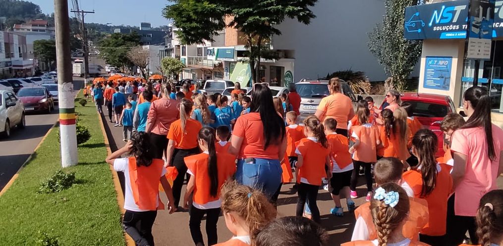 A tradicional caminhada do Agosto Laranja aconteceu na tarde desta quinta-feira, 01, pelas principais ruas do cento de São José do Cedro. De acordo do Ediane Siebeneichler, diretora do educandário, a saída foi em frente a APAE Viviane.