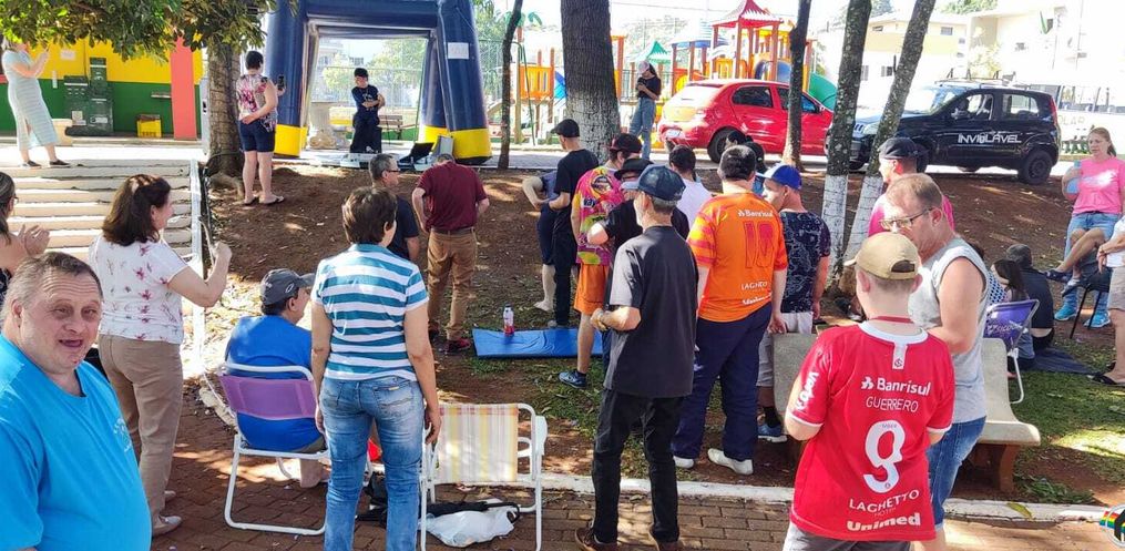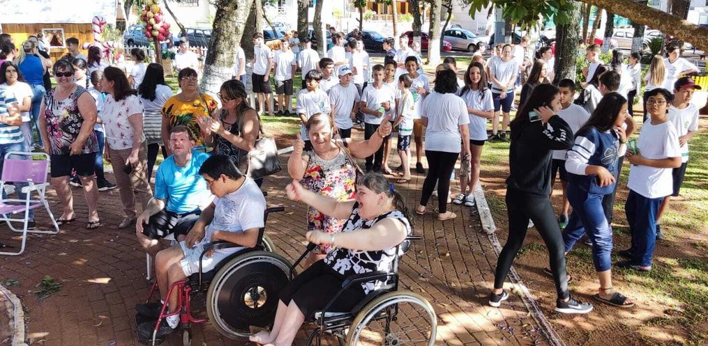 A APAE Viviane de São José do Cedro começou na sexta-feira, 18, uma programação especial na praça central com os alunos e a presença do DJ Rodrigo Pé – que toca instrumentos com os pés. A apresentação iniciou às 14h e encerrou próximo das 15h30.