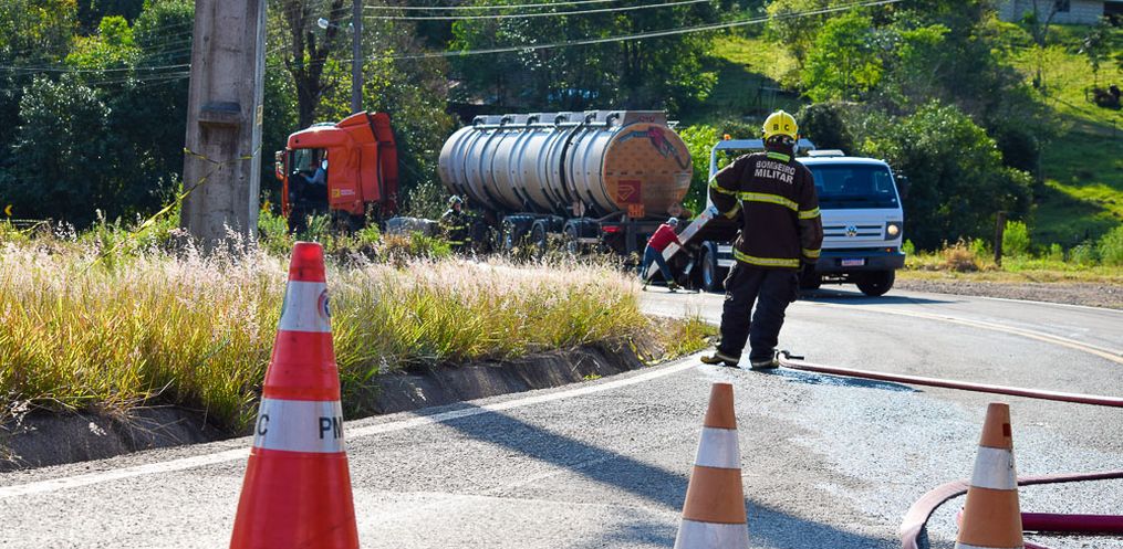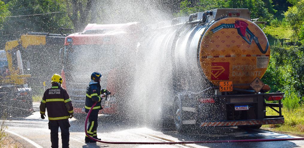 O Corpo de Bombeiros orienta a população em casos de acidentes com cargas perigosas, deve ser mantido uma distância superior a 100 metros, acionar o Corpo de Bombeiros e informar qual é a substância e se há ou não derramamento da carga.