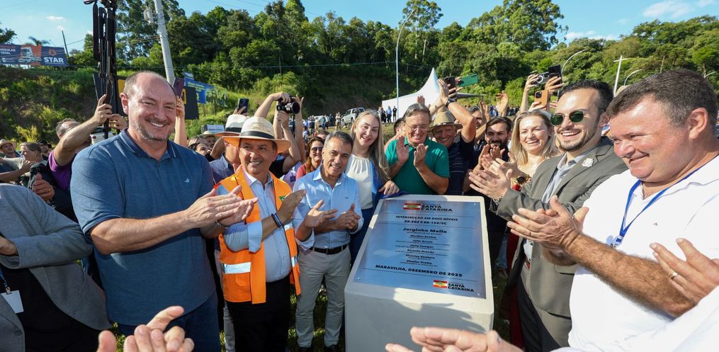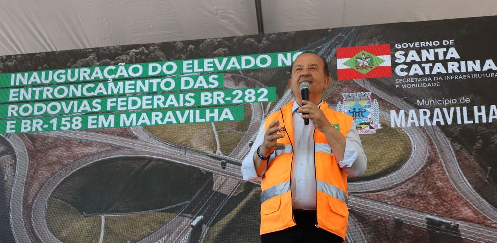 O governador Jorginho Mello inaugurou nesta quinta-feira, 18, o novo elevado no entroncamento das BRs 282 e 158, em Maravilha. A estrutura, prometida há mais de quatro décadas, resolve um dos principais gargalos logísticos da região.