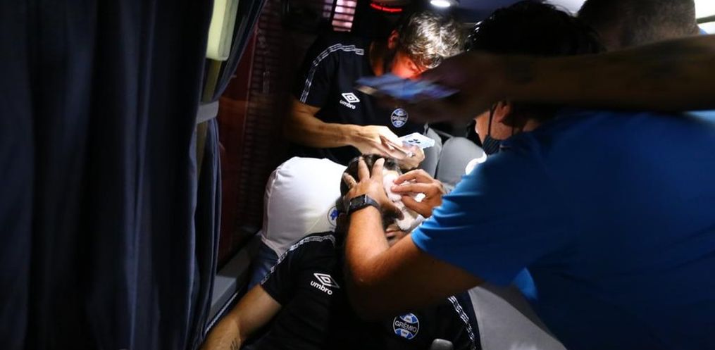 O paraguaio Villassanti, que estaria escalado para o clássico, ficou ferido e precisou ser encaminhado por ambulância para o hospital para passar por exames mais detalhados. Outros jogadores também foram atingidos por estilhaços de vidros.
