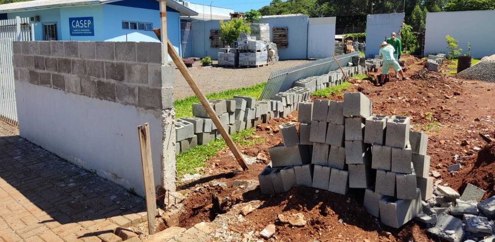 A unidade do Casep em São José do Cedro recebe a construção do muro lateral e frontal. A antiga estrutura na lateral estava caindo e após vários pedidos para reconstrução a unidade foi atendida.