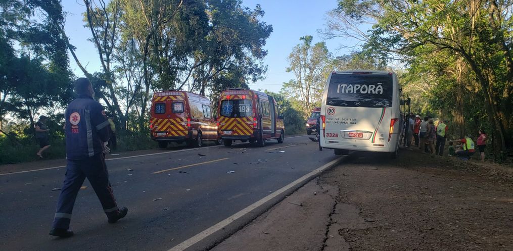 Um acidente envolvendo um carro de passeio, um micro-ônibus e um caminhão de mudança foi registrado por volta das 17h30 deste sábado, 19, na rodovia SC 163, em Linha Cristo Rei , São João do Oeste.