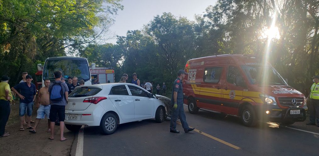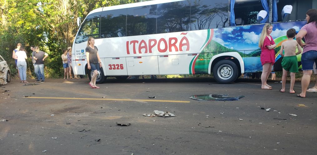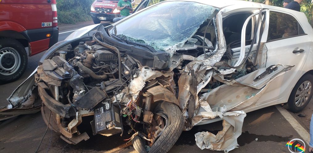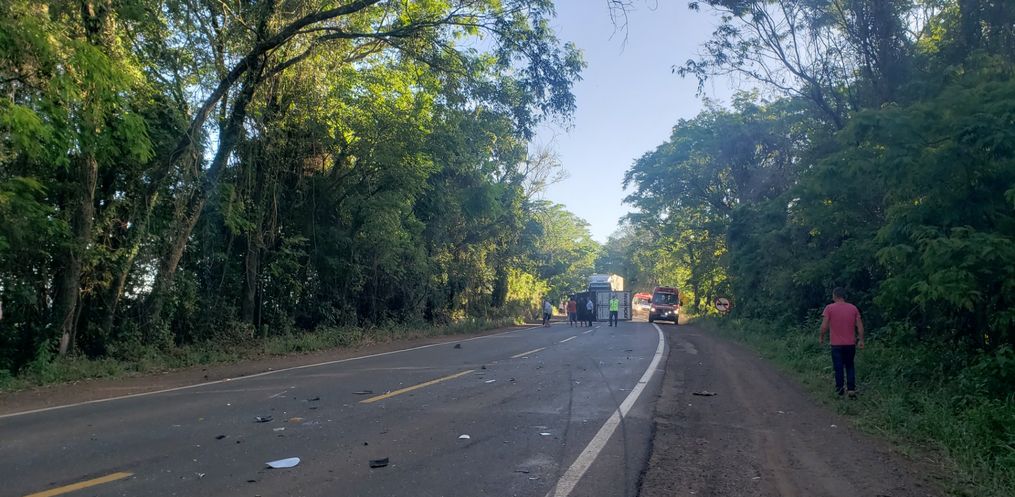 O carro colidiu contra um caminhão de mudança, com placas de Santa Maria/RS, que se deslocava no sentido contrário. Com o impacto, o caminhão acabou tombando e atingiu a lateral de um micro-ônibus que também transitava na rodovia.