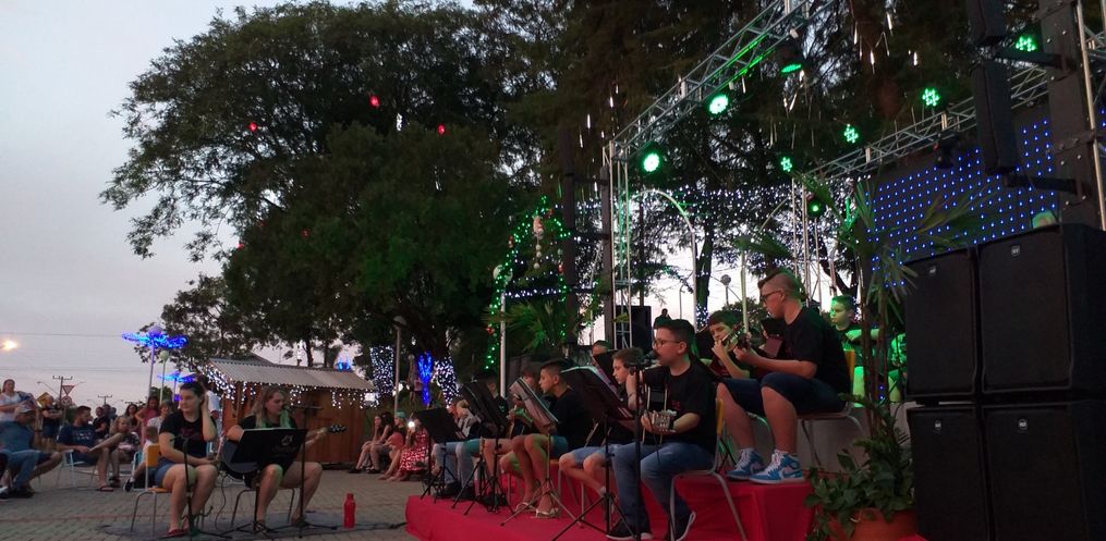 Alunos de várias faixas etárias estiveram cantando e tocando instrumentos para a comunidade campoerense. Enquanto as famílias aproveitavam o fim de tarde na Praça, aconteciam as apresentações.