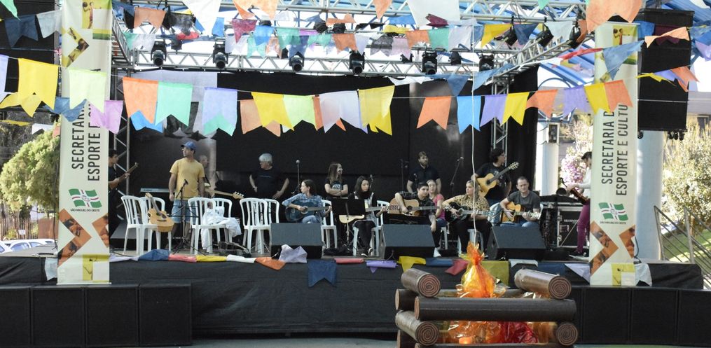 As Secretaria de Cultura e de Educação realizaram, na tarde deste sábado, 24, o “Arraiá de São Migué”. O evento ocorreu na área coberta da praça Walnir Bottaro Daniel e reuniu um grande público. O Arraiá reuniu 14 escolas da rede municipal de ensino. Os alunos fizeram apresentações artísticas no palco de shows e as Associações de Pais e Professores se responsabilizaram pela venda de bebidas e comidas típicas da festa junina.