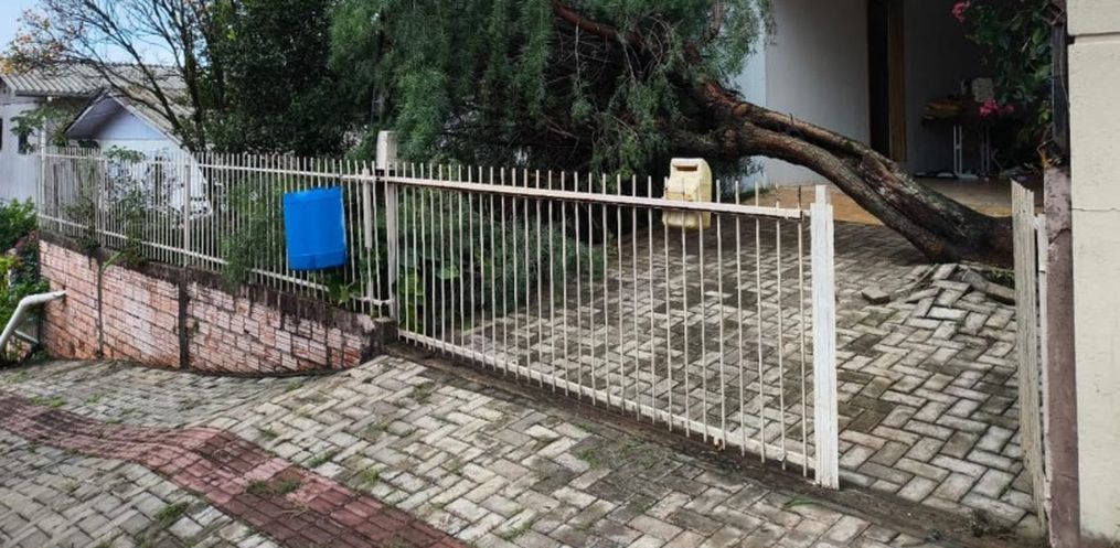 A equipe foi acionada por volta das 9h35 para averiguar a queda de uma árvore de grande porte na Rua Coronel Bertaso, após a incidência de fortes chuvas na região. No local, os bombeiros constataram que a árvore havia caído sobre parte do telhado de uma residência e atingido um veículo. Outros dois carros ficaram bloqueados, mas não foram danificados.