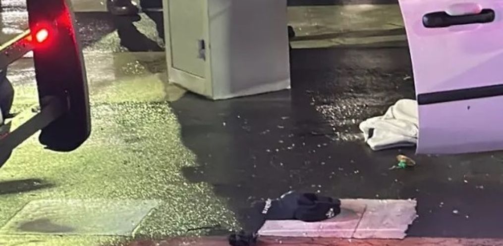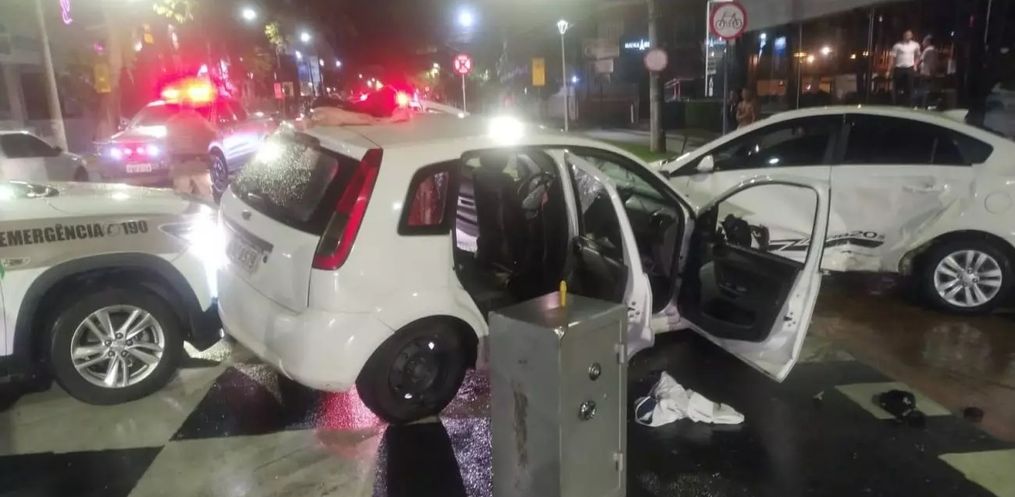 Ao chegar no cruzamento com a Alameda Rio Branco, os assaltantes avançaram sinal vermelho e bateram em um carro HB20 que seguia pela via preferencial.