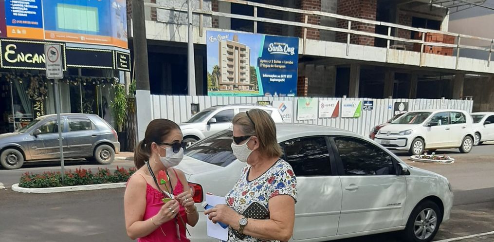 Mônia Katzer considera que a campanha com a Jornada de Palestra tem grande influência na proteção a mulher. Na manhã desta quinta-feira, 25, foi realizada campanha no centro da cidade com entrega de uma flor e um cartão onde consta os telefones para denúncia. A ação em parceria com o Poder Judiciário teve o intuito de divulgar os canais de denúncia no Dia Internacional de combate a violência contra a mulher.
