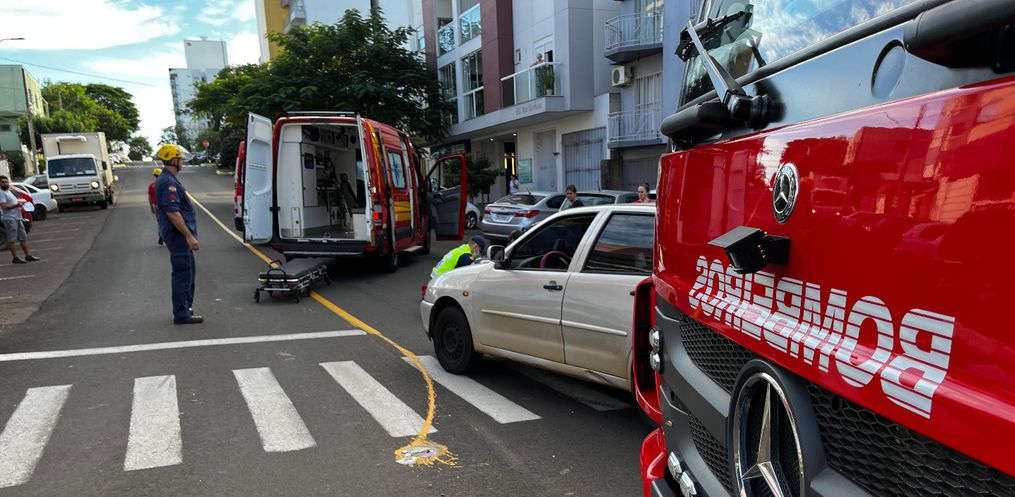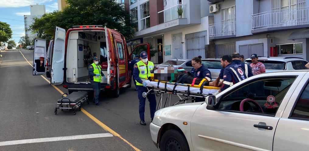 Na manhã desta quarta-feira, 8, por volta das 08h45, um idoso foi atropelado na esquina da Rua Rui Barbosa com a Sete de Setembro, no centro de São Miguel do Oeste.