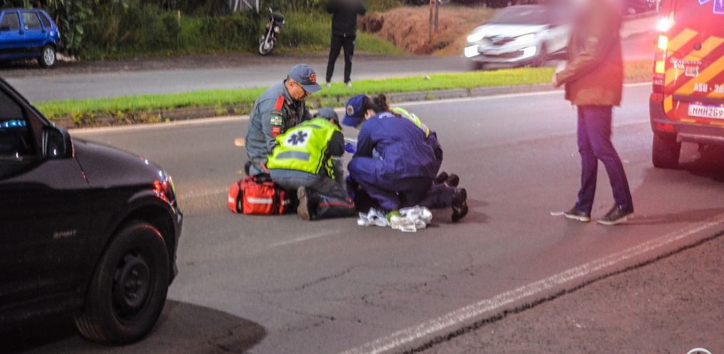 Segundo apurado no local com o motorista do Celta, com placas de São Lourenço do Oeste, ele seguia sentido centro e a mulher acabou atravessando a avenida de forma repentina, sem olhar para os lados.