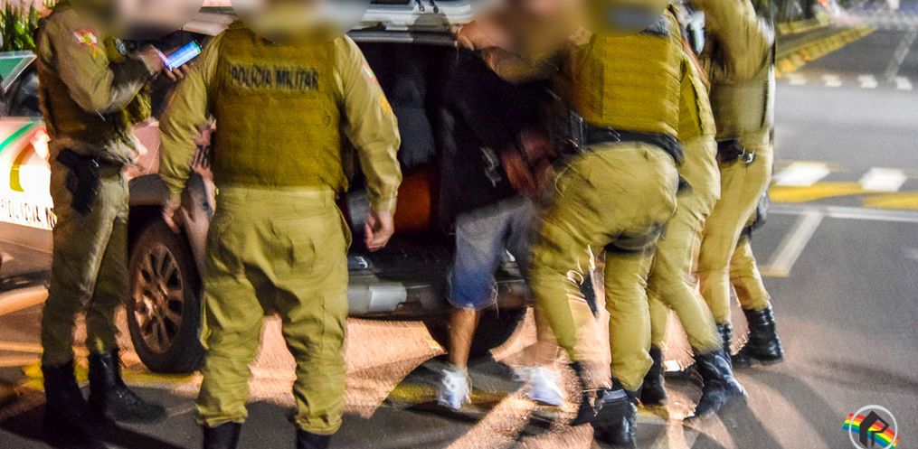 Além disso, durante o deslocamento ele danificou a viatura com chutes e pontapés. A Polícia Militar também divulgou que foram resguardados todos os direitos constitucionais, dado voz de prisão pelos crimes de tentativa de furto, danos contra o patrimônio público, desacato e resistência.