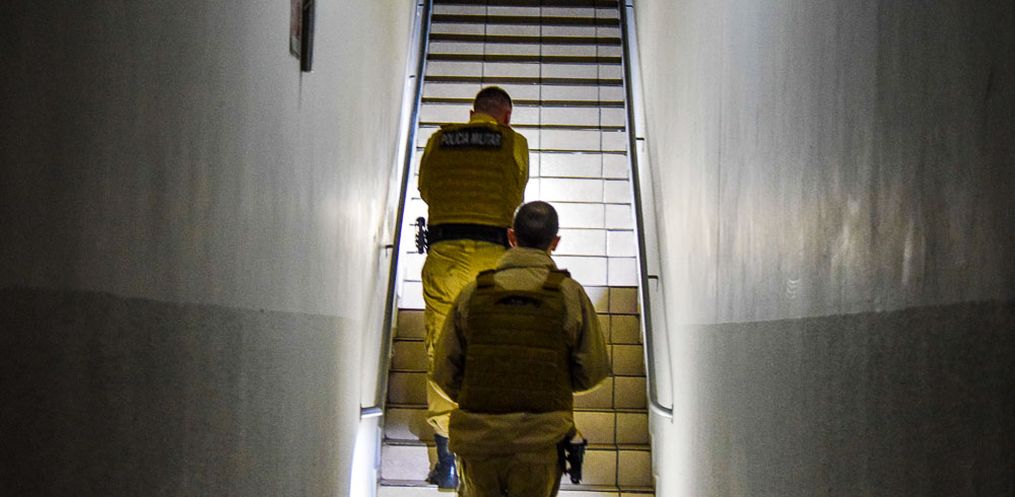 A PM informou que imediatamente, foi deslocado ao local, sendo que o autor já havia se evadido, seguindo em direção à rua XV de Novembro. Após poucos instantes, o homem com as vestes e características informadas, foi abordado na rua Marcílio Dias em visível estado de embriaguez ou droga ilícita.