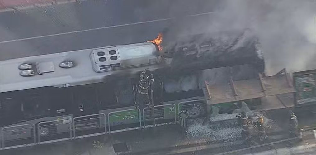A fiação aérea também ficou em chamas. A avenida está totalmente interditada.