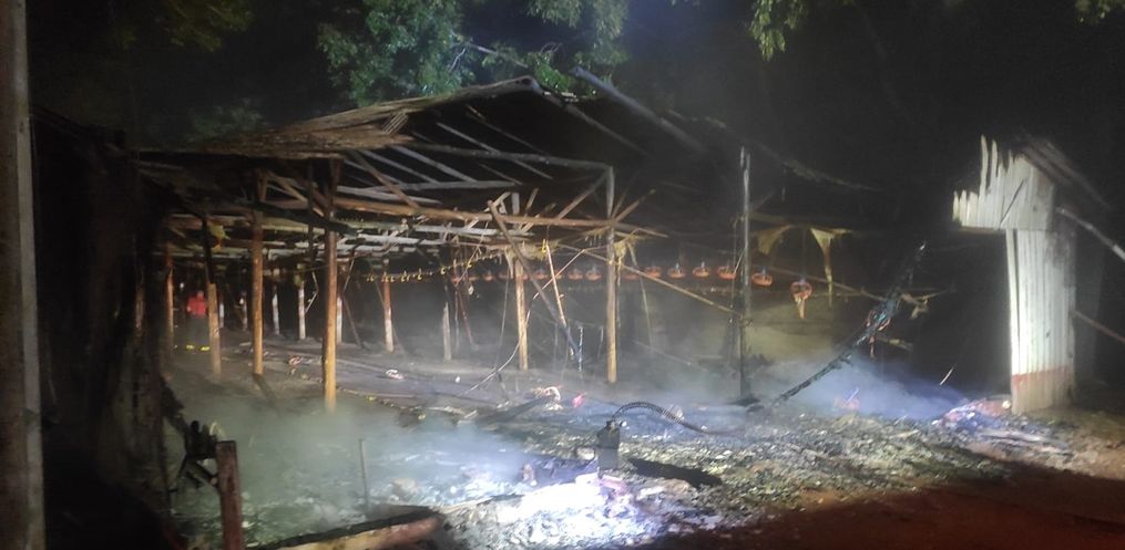 Para entrar no aviário e combater o fogo que atingia o teto revestido por lona, a equipe removeu uma parte da tela lateral. Foram utilizados cerca de 1.500 litros de água no combate e rescaldo. Não haviam aves alojadas e as causas do incêndio ainda estão sendo apuradas. O proprietário relatou que não havia equipamentos à combustão em atividade e que apenas a energia elétrica estava ligada.