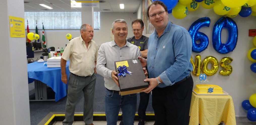A agência do Banco do Brasil de São Miguel do Oeste completou nesse domingo, 12, 60 anos de instalação no município. Alusivo a data, nessa segunda-feira, 13, servidores e autoridades participaram de uma confraternização.