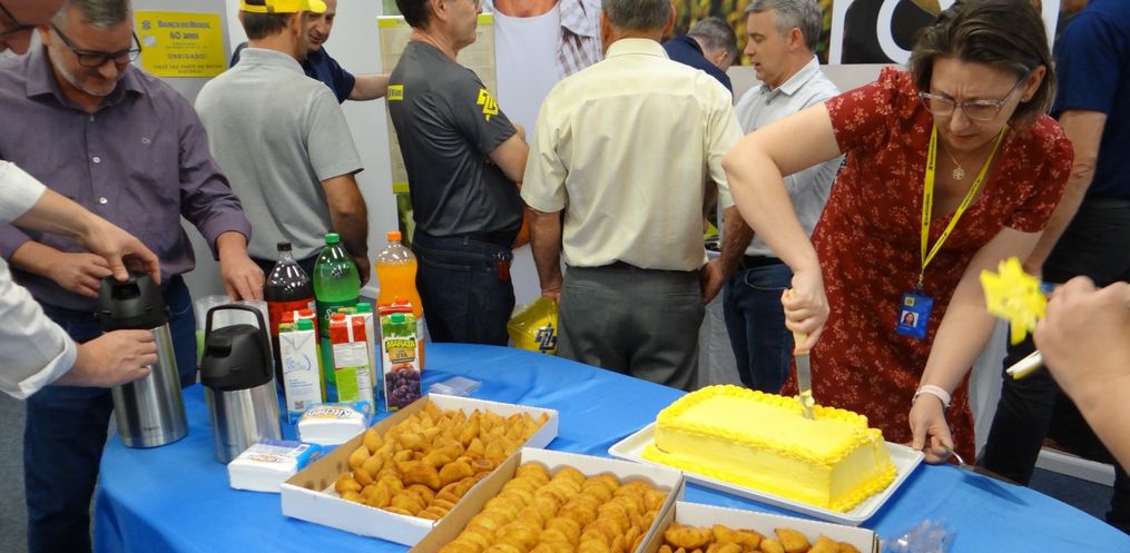 Ao final os presentes presenciaram o corte do bolo em comemoração aos 60 ano de História do Banco do Brasil em São Miguel do Oeste e puderam ver documentos e fotos antigas que retratam um pouco da trajetória da Instituição Financeira desde a data de sua inauguração no município.