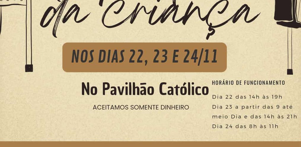 O evento terá início nesta sexta feira, 22, e segue até o dia 24 no Pavilhão Católico ao lado da Igreja Matriz.