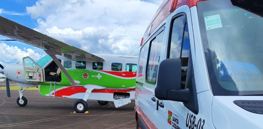 O recém-nascido apresentava um quadro de insuficiência respiratória. Ele foi colocado na ambulância USB 03 e levado até o aeroporto, onde o avião o aguardava para o transporte até Lages.