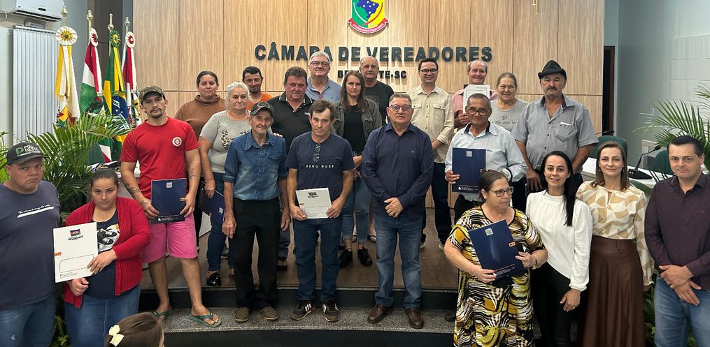 O ato contou com a presença de lideranças municipais e comissão responsável pelo programa, além de membro do cartório de registro de imóveis e representante da empresa ADEHASC - Associação para o Desenvolvimento Habitacional Sustentável de Santa Catarina, que teve papel fundamental nesta regularização fundiária.