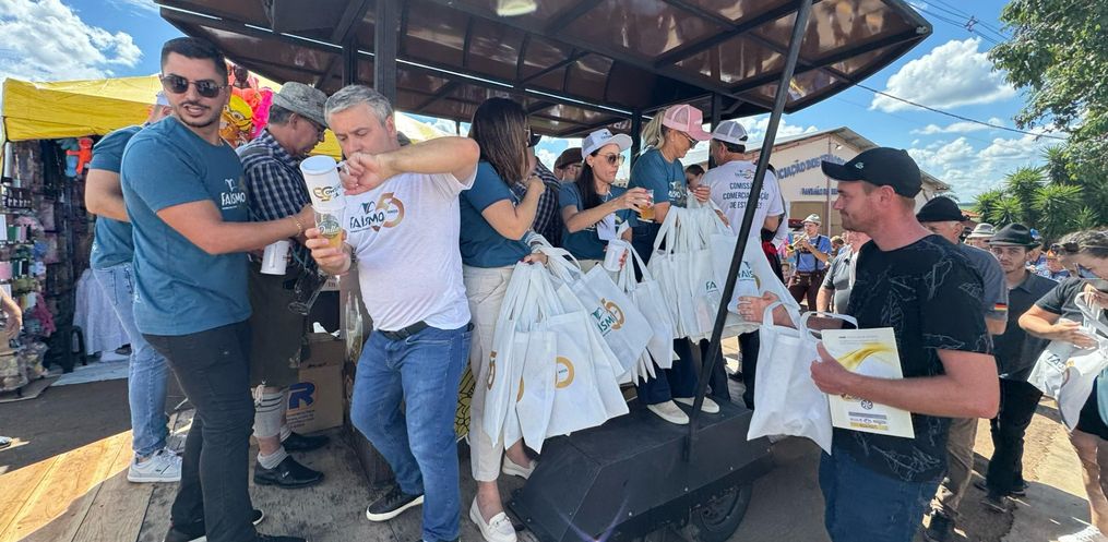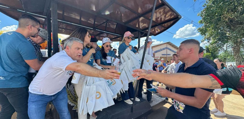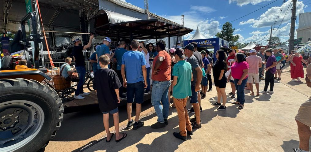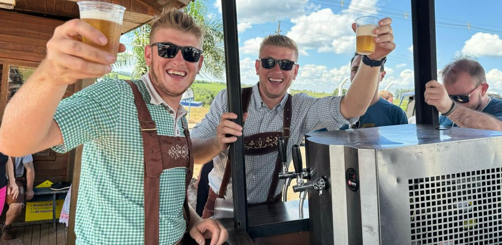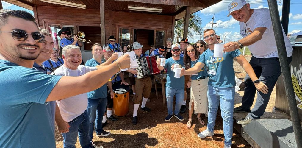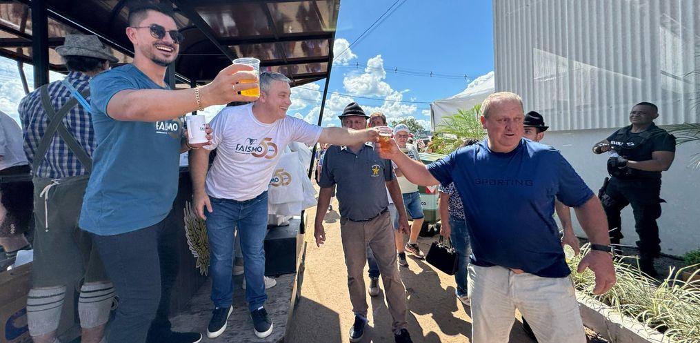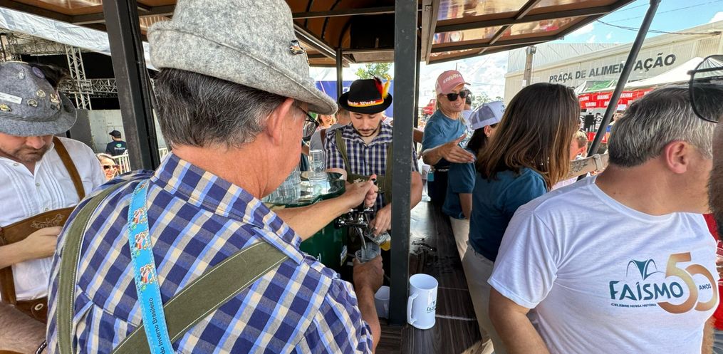 A Faismo 2024 teve um pouco de Oktoberfest na tarde deste sábado, 17. Por volta da 15h, a Bandinha Bierwagen de São João do Oeste circulou pelo parque de exposições entregando um copo de chopp para os visitantes da feira. Com cerca de 20 integrantes, o grupo animou a Faismo com músicas típicas da cultura germânica. Cerca de 200 litros de chopp foram distribuídos na tarde deste sábado.