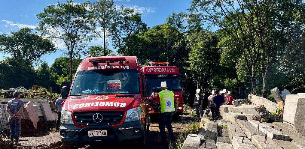 Um trabalhador de 44 anos sofreu um acidente na manhã desta sexta-feira, 17, em uma obra às margens da BR-158, em Cunha Porã. Ele foi atingido por um bloco de concreto pré-moldado de aproximadamente 300 kg, que caiu sobre a perna esquerda.