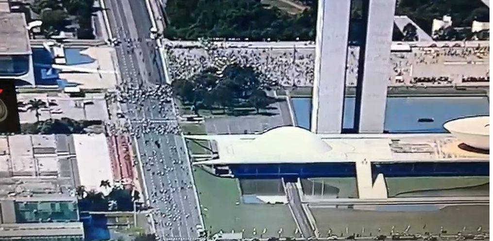 Depois de andar de uma ponta a outra da Praça dos Três Poderes, Bolsonaro decidiu montar em um cavalo da polícia que fazia a segurança da manifestação, dando galopes em determinado momento.