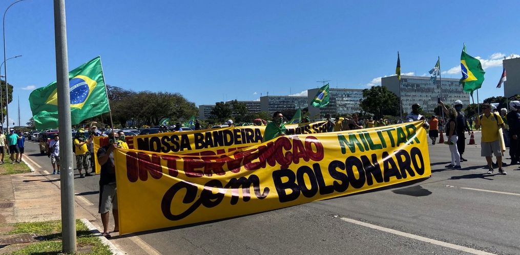 Os manifestantes pediram intervenção militar e criticaram o presidente da Câmara, Rodrigo Maia (DEM-RJ), ministros do Supremo Tribunal Federal e o ex-ministro da Justiça e Segurança Pública, Sergio Moro – que acusa o presidente de tentar interferir politicamente na Polícia Federal para proteger familiares.