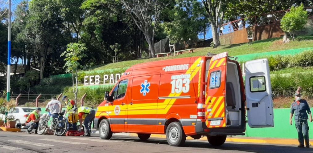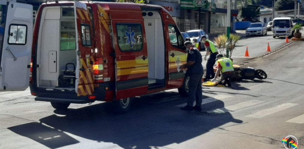 Um idoso sofreu escoriações em acidente envolvendo bicicleta e moto na Avenida Gustavo Fetter, em frente à Escola Padre Vendelino Seidel. O acidente foi por volta das 9h.