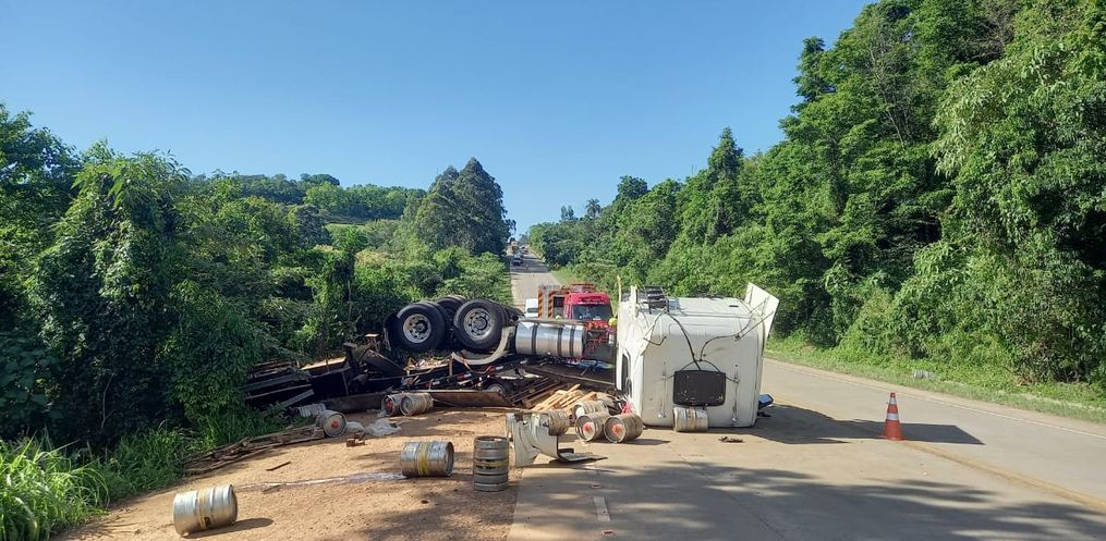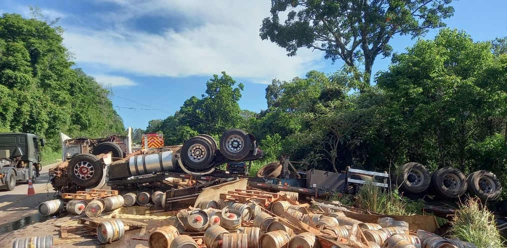 De acordo com o Corpo de Bombeiros, o acidente foi do tipo colisão traseira seguida de saída de pista e queda em uma ribanceira, de aproximadamente 70 metros. Com o impacto, o Ford Cargo acabou despencando da ribanceira, enquanto a carreta Scania ficou parcialmente sobre a pista e parte da carga desceu o barranco.