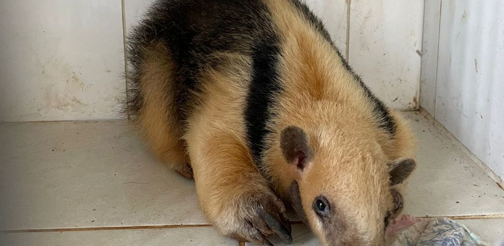 O animal, um 'Tamanduá Mirim', também conhecido como 'Tamanduá de Colete', estava confinado em baixo de uma moradia.
