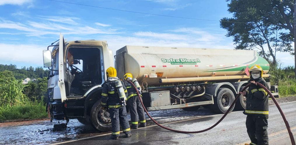 De acordo com o Corpo de Bombeiros, o condutor do veículo e moradores próximos conseguiram controlar parte das chamas usando extintores. A ação impediu que o fogo alcançasse o tanque de combustível, restringindo o incêndio à cabine do caminhão.