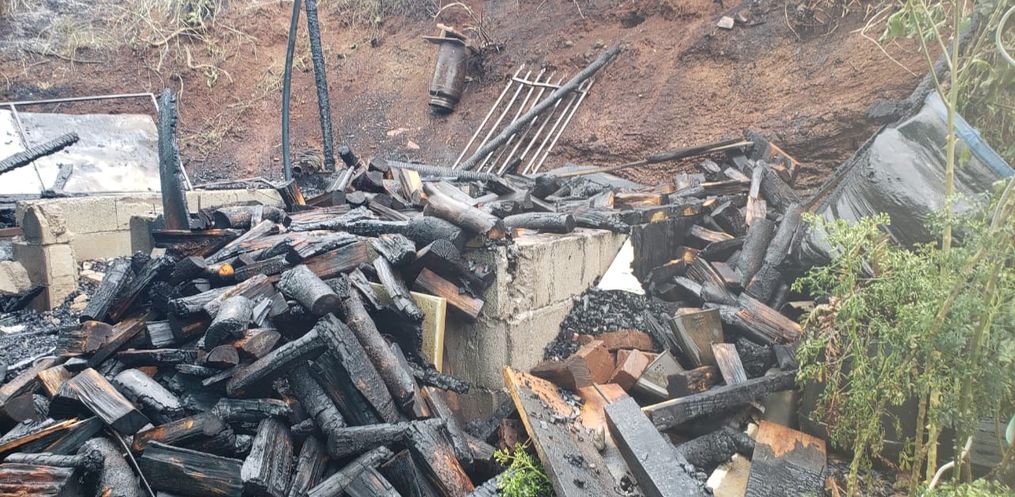 O depósito de materiais foi totalmente destruído pelo fogo e acabou atingindo a parede da edificação mista. Os proprietários não souberam informar como o fogo começou. Outros materiais como ferramentas que estavam no depósito também foram consumidos pelo incêndio. Ninguém se feriu.