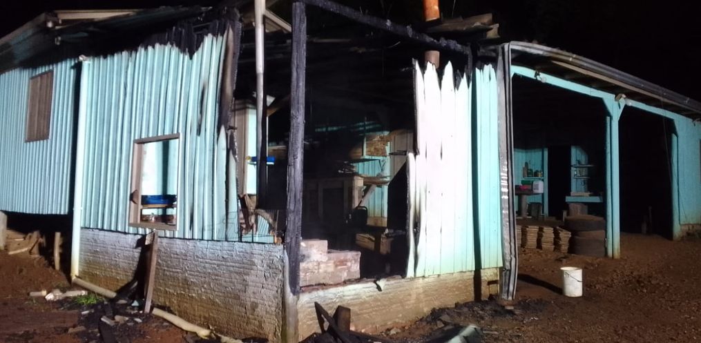 Um incêndio mobilizou o Corpo de Bombeiros durante a madrugada desta terça-feira, 31, na Linha Várzea Alegre, interior de Bandeirante. O fogo atingiu um galpão de aproximadamente 180m² por volta das 3h30 e se concentrava na lateral da edificação quando os bombeiros chegaram ao local.