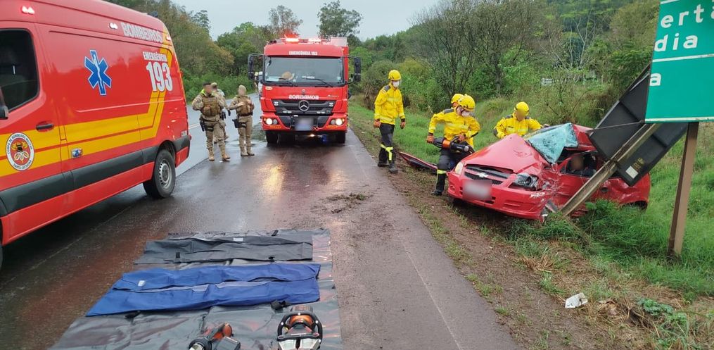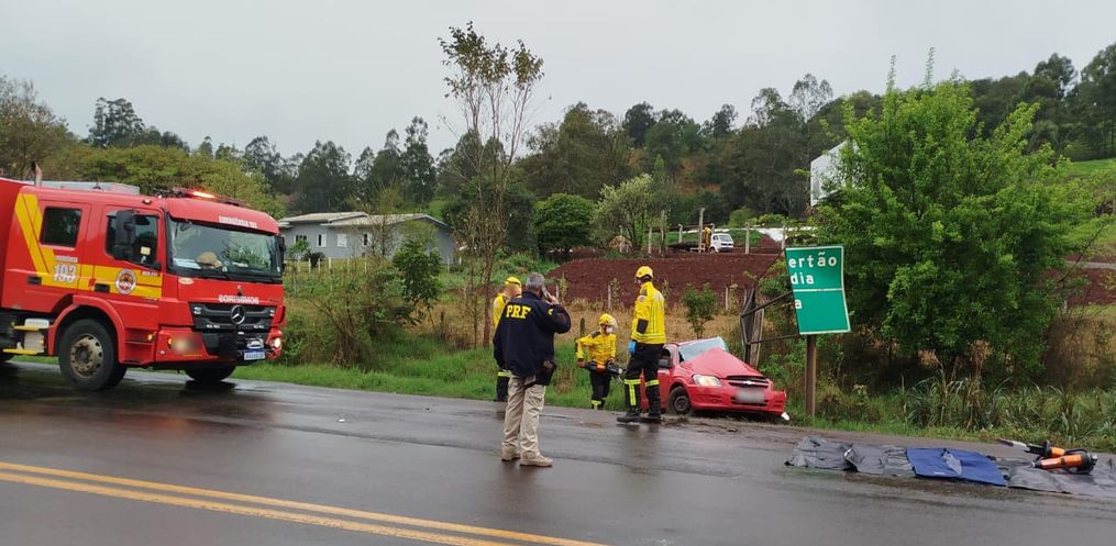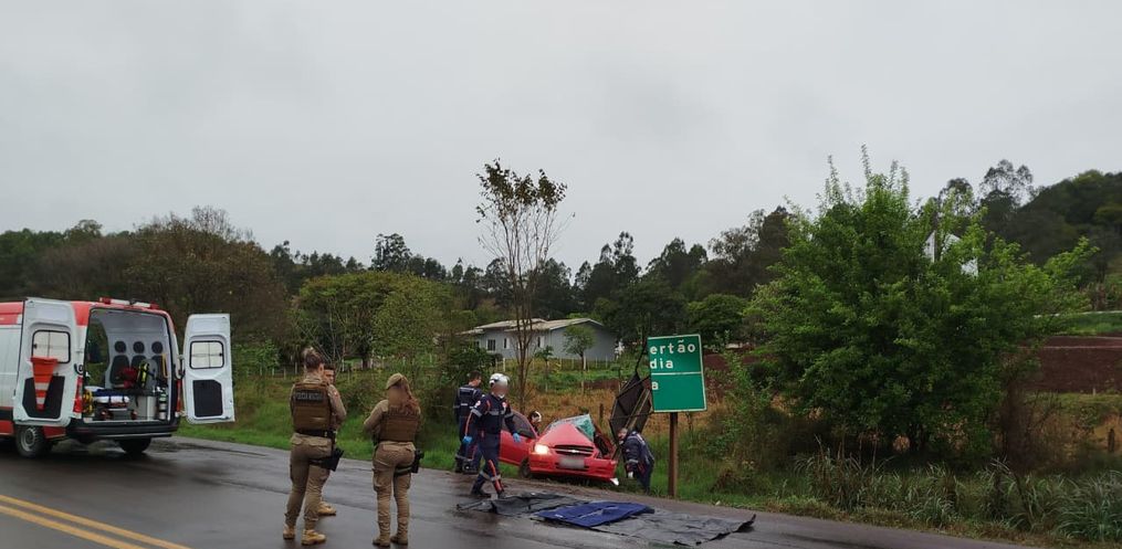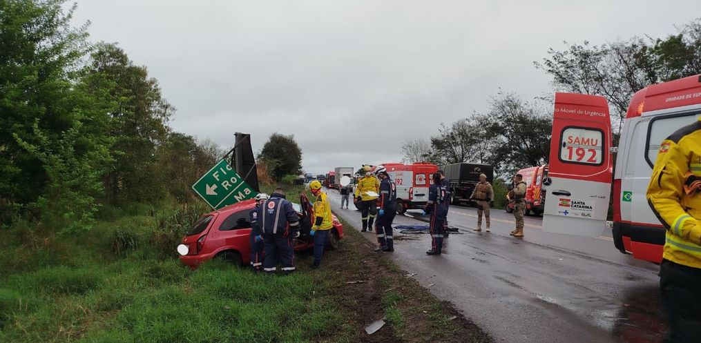 Duas pessoas morreram após uma colisão grave entre um carro e uma carreta na manhã desta sexta-feira, 5, por volta das 09h40, na BR-282, no trevo de acesso ao município de Flor do Sertão, em Iraceminha.