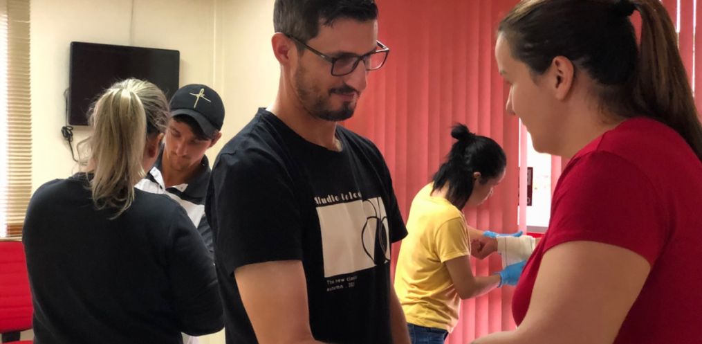 Durante o treinamento, eles passaram por quatro oficinas práticas: Atendimento pré-hospitalar (APH), com Ressuscitação Cardiopulmonar (RCP), ministrada pelo Cabo Felipe Alberton; Imobilização e controle de hemorragias, aplicada pelo Soldado Gustavo Sutili; Combate a incêndio, com montagem de estabelecimento, através do Soldado Elton da Silva Alves, e Uso de extintores no combate às chamas, pelo Soldado Alan Sutili.