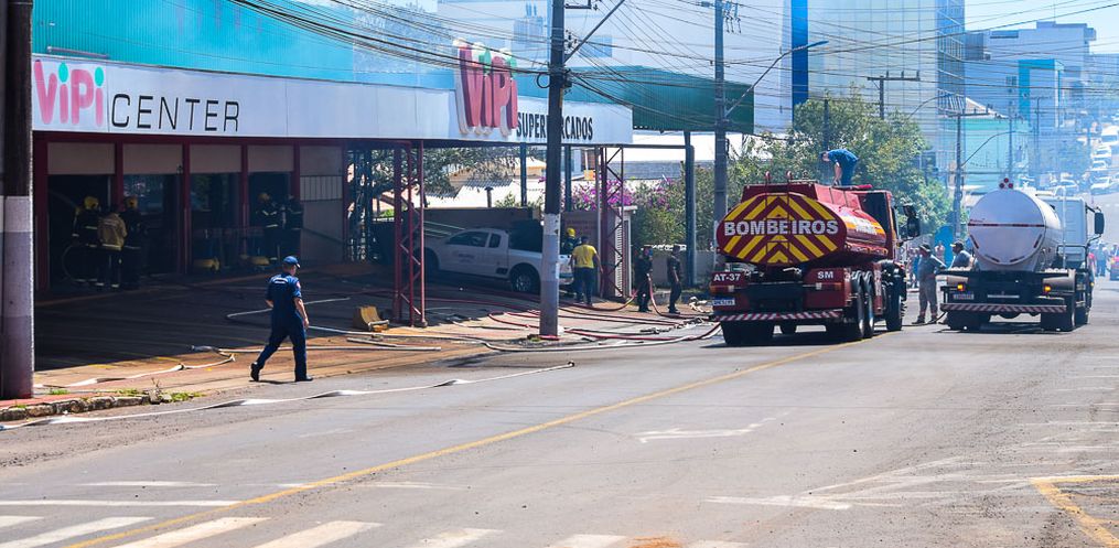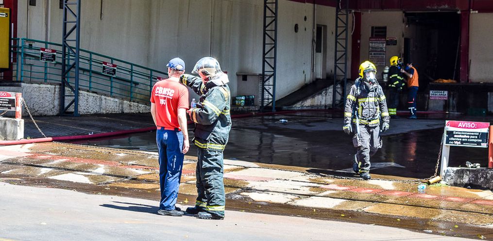 Galeazzi destaca que por volta das 15h as guarnições conseguiram combater as chamas e se iniciou a operação de rescaldos no supermercado, bem como no depósito.