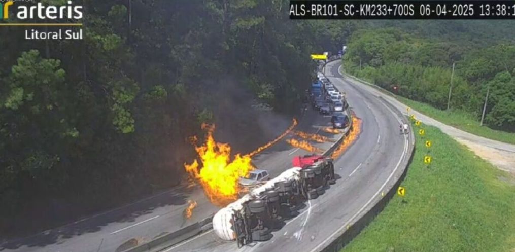 O trecho do Km 233 da BR-101, em Palhoça, foi liberado às 5h09min desta segunda-feira, 7. O local estava bloqueado desde às 13h30min de domingo, 6, quando uma carreta carregada com combustível tombou e, em seguida, explodiu. O fogo se alastrou pela rodovia e atingiu 27 veículos, segundo estimativa do Corpo de Bombeiros.