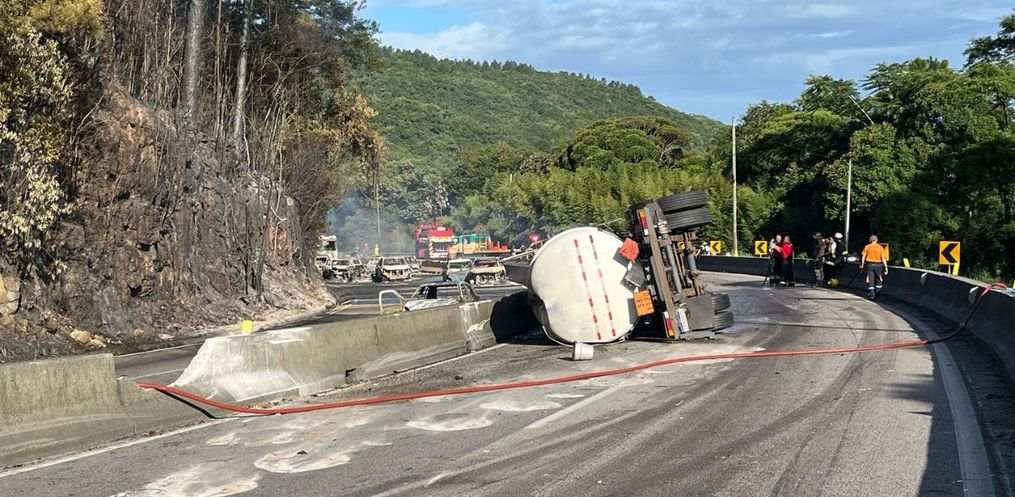 De acordo com a Polícia Rodoviária Federal (PRF), o trânsito segue lento no local em razão da complexidade da operação. A demora para liberação da via foi causada pela gravidade da situação e pela presença de material inflamável no local.