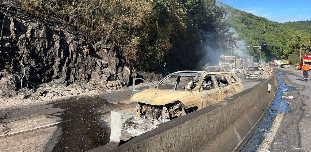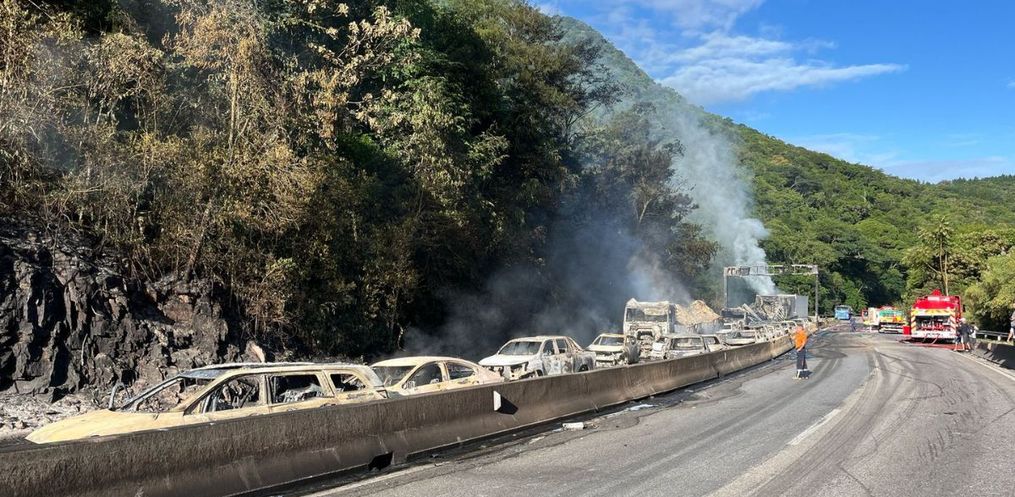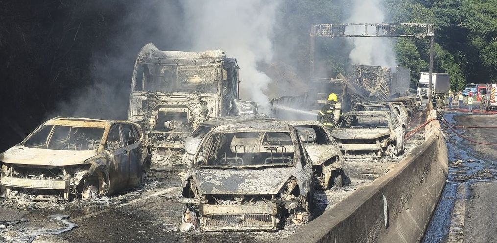 Um ônibus que passava pela via contrária na hora do acidente conseguiu acelerar e escapar das chamas. Contudo, outros veículos foram consumidos pelo fogo. Segundo o Corpo de Bombeiros, em balanço feito junto com a Arteris Litoral Sul foram contabilizados 24 carros e três carretas atingidos pelo fogo.