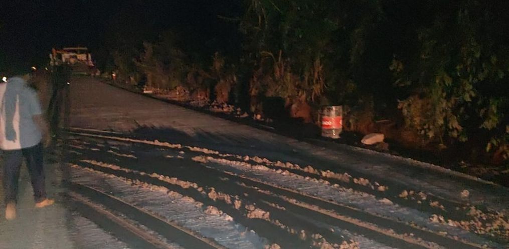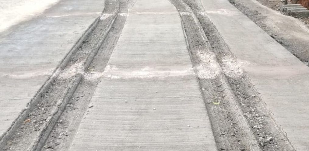 Segundo constatado, os caminhões acabam avançando o ‘Pare e Siga’ durante à noite e passando por cima do concreto ainda fresco, assim danificando o material. As placas de concreto levam cerca de sete dias para secarem por completo dependendo do tempo naquela semana. Neste caso registrado na noite de ontem, serão quase 100 metros, ou seja, 20 placas precisarão ser recuperadas, sendo que parte vai ter que ser demolida para garantir a qualidade do material.