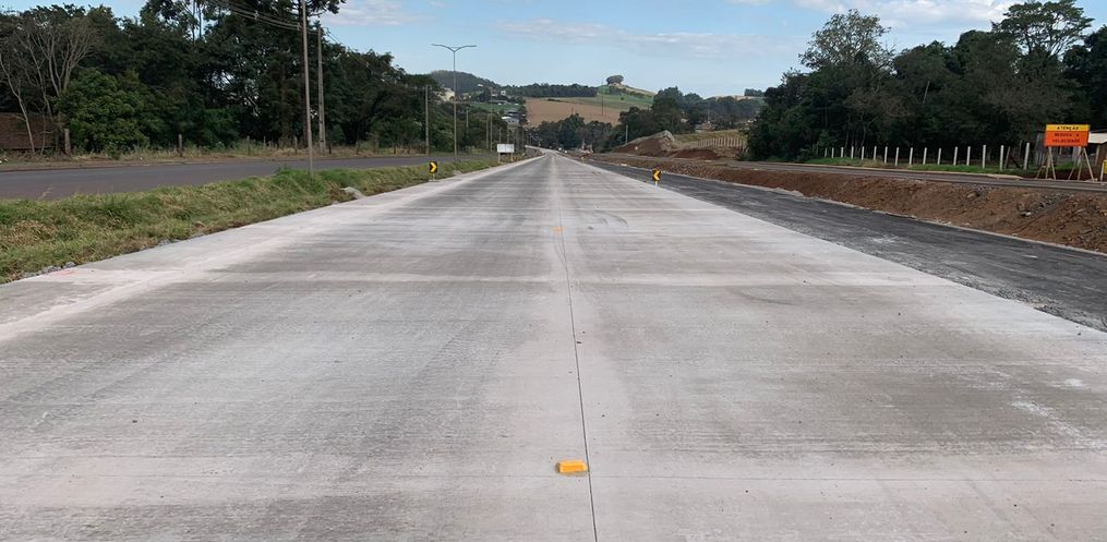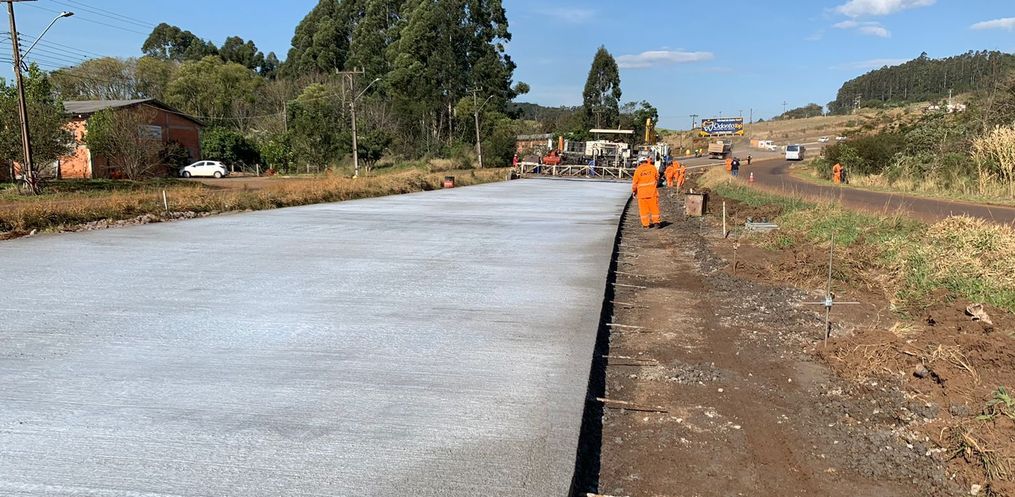 Pouco mais de oito quilômetros da BR-163 foram pavimentados com concreto até o começo da tarde desta terça-feira, 28. Os trabalhos até então executados ficam entre o trevo de acesso a Guarujá do Sul e o quilômetro 97 em São José do Cedro.