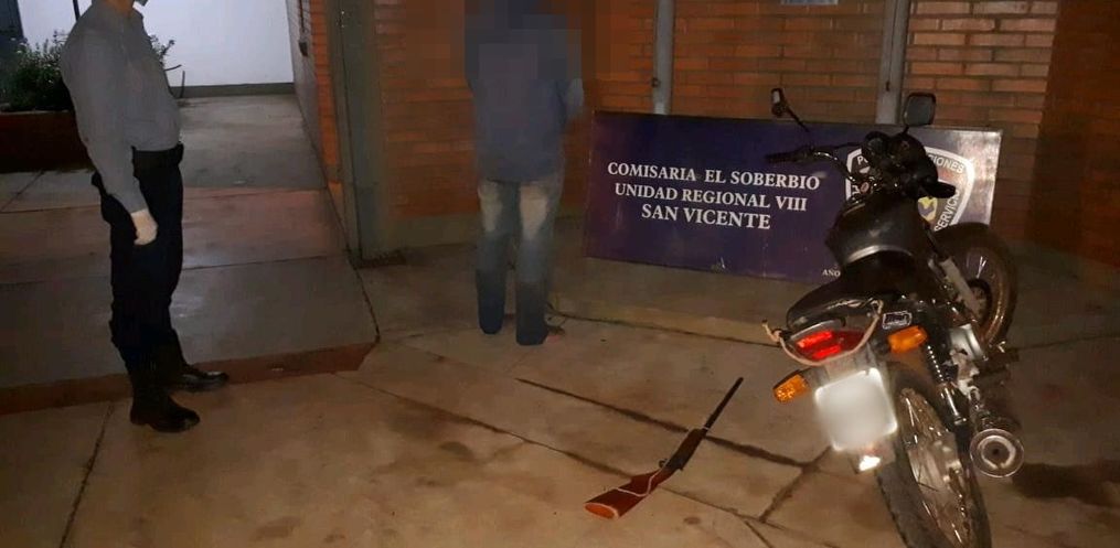 Os policiais de El Soberbio, flagraram dois homens de 35 anos, um de 43 e outro de 34 anos. Segundo a polícia Argentina, são todos de Itapiranga e se encontravam no local com intenções de caçar. Além disso, apreenderam uma espingarda de calibre 12, também uma armadilha caseira, um tubo de dinamite supostamente caseiro e uma motocicleta.