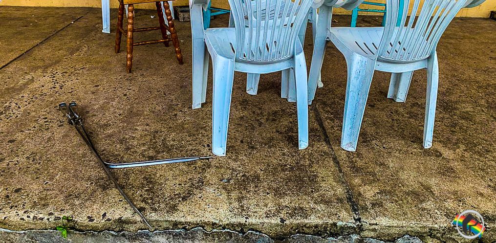 A partir daí começou uma confusão, o homem teve o espeto tomado e levou duas estocadas na barriga.