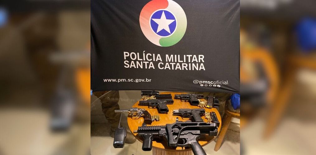 Os policiais também apreenderam cinco armas de fogo, entre elas, uma submetralhadora utilizada em um assalto a um posto de combustíveis no bairro Cacupé, no Norte de Florianópolis, na madrugada de quinta-feira (30). A ação também resultou na apreensão de três pistolas, um revólver, diversas munições de calibres variados e rádios comunicadores.