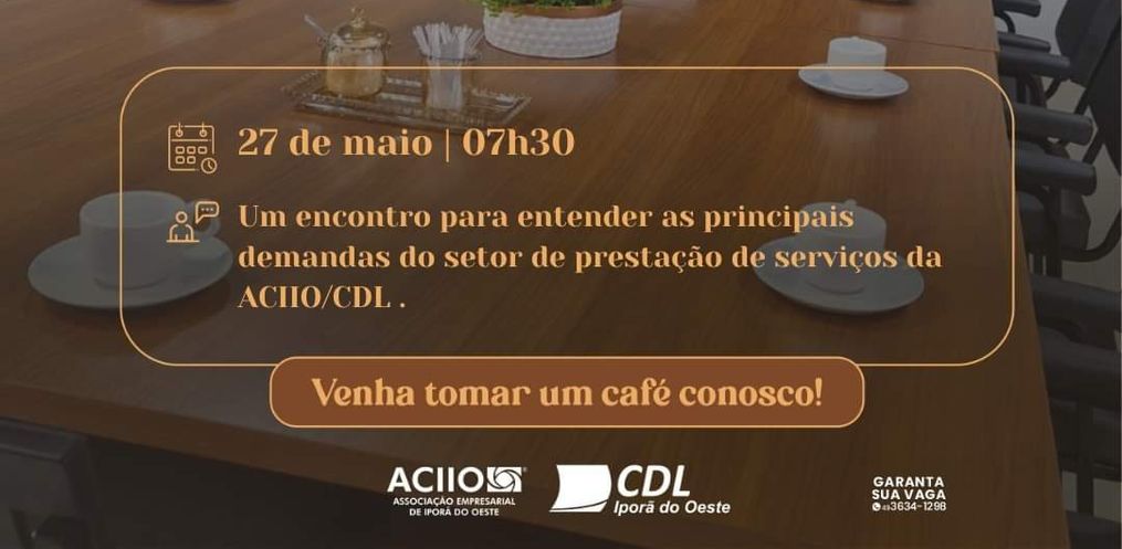A ACIIO/CDL de Iporã do Oeste vai realizar na próxima segunda feira, 27, à partir das 07h30 da manhã, mais uma edição do Café com Empresário 2024.