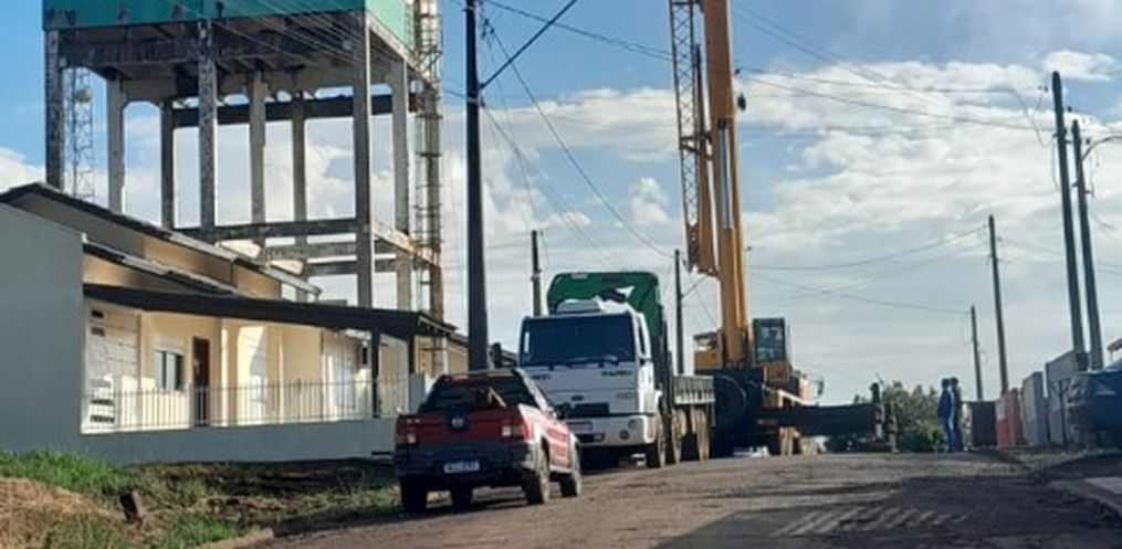 Uma caixa d’água localizada no loteamento próximo à empresa Dass, em Campo Erê, começou a ser demolida nesta quarta-feira, 06. A estrutura apresentava risco de desabamento devido a problemas no solo onde foi construída.