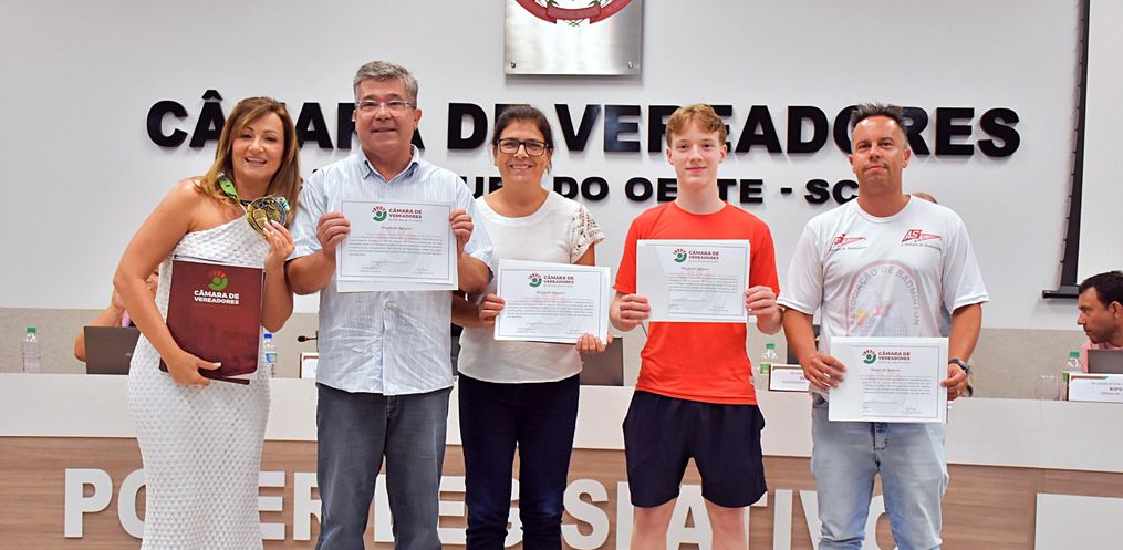 Durante a sessão ordinária desta quarta-feira, 26, na Câmara Municipal de São Miguel do Oeste, foram aprovadas diversas homenagens a atletas. Entre as moções de aplauso defendidas na sessão, destacam-se as homenagens aos atletas de badminton, judô e kickboxing.