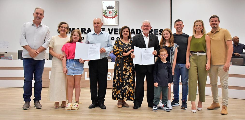 A Câmara Municipal de São Miguel do Oeste prestou uma homenagem nesta terça-feira, 19, aos engenheiros agrônomos Flávio Bastian Fries e José Carlos Paiva Filho, que celebram 50 anos de formação. Por meio da Moção de Aplauso 151/2024, os profissionais foram reconhecidos pelo legado no desenvolvimento da agropecuária local e regional.